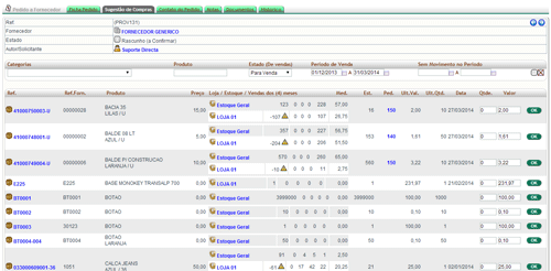 - - Sugestão de compra com análise de período variável de vendas, total de pedidos de compra em andamento, estoque dividido por loja e total, com geração automática do pedido de compra a partir da confirmação da sugestão;