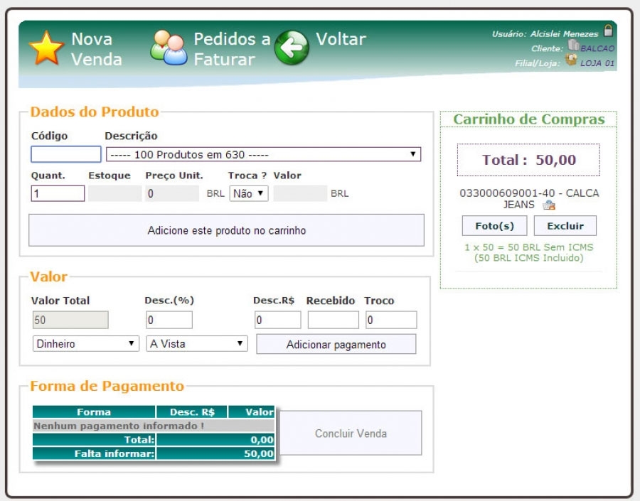 - - Permissão da alteração do cliente e do vendedor no PDV ou caixa, informando a cada venda efetuada se desejar, basta clicar no link do cliente no canto superior direito do PDV;