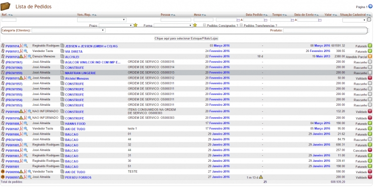 A lista de pedidos com o parâmetro habilitado é exibida como a imagem abaixo.
