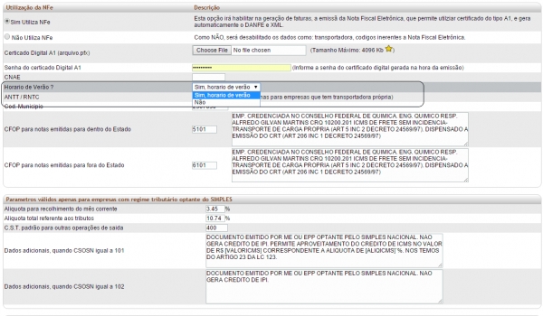 Na versão 5.53 do APLWeb surgiu um novo parâmetro para ajustar a hora da NF-e para o horário de verão. Como nossos servidores estão em cidades que fazem parte do horário de verão brasileiro e clientes que se encontram em estados que não fazem parte, nestes estados surgiram problemas de Rejeição 703 - Data-Hora de Emissao posterior ao horario de recebimento. Com isso não recebendo o protocolo de autorização. Agora tanto na tela de Dados da Empresa, quanto na ficha de Estoque/Filial/Loja para quem tem multi-filiais, existe o opção para informar se a NF-e deverá usar o não o horário de verão. Mesmo para estados que não fazem parte como os da regiões Norte e Nordeste deverão selecionar SIM, pois como já falamos os nossos servidores estão em SP e RJ, e esses estão no horário de verão.