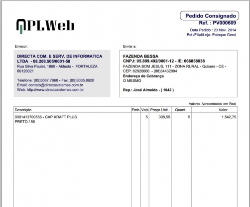 E também ao geraro PDF do pedido consignado, no PDF, também é destacado o tipo de pedido, no caso Pedido Consignado.