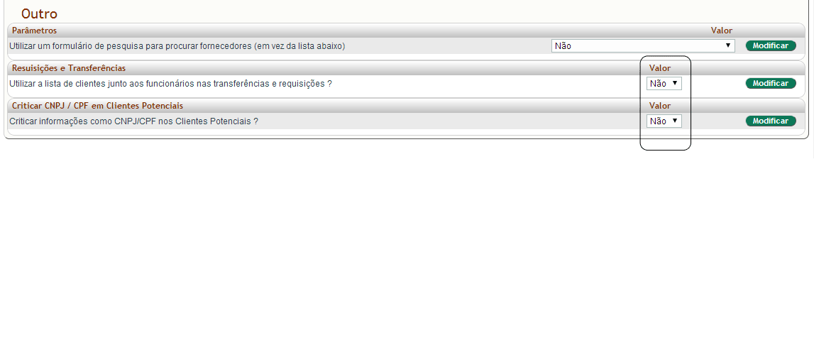Após clicar no menu Módulos, procure nas lista de módulos um com a descrição: Impostos, gastos sociais e despesasUma outra opção de parâmetro criada, foi o Utilizar a lista de clientes junto aos funcionários nas transferências e requisições ?, que permite que a empresa possa parametrizar para utilizar na lista de requisições e transferências, os clientes. Isto para casos de produtos em demonstração por exemplo, para facilitar o controle dessas saídas e devoluções.