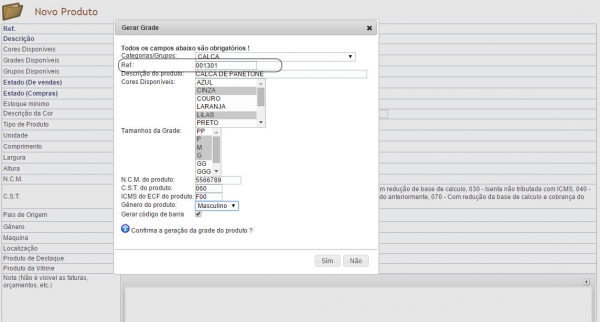 Agora na versão 4.77 do APLWeb, é possível informar a referência do produto para que o APLWeb a partir dela crie as cores e tamanhos selecionados como já era feito até então. A vantagem desse novo campo é que, o APLWeb sempre gera uma nova referência a cada vez que você vai incluir uma grade com sequencias de cores e tamanhos, e se for incluir posteriormente outra cor por exemplo, ele irá gerar então uma referência nova. Desta forma você tem como incluir facilmente uma cor ou tamanho depois de já cadastrado, sem ter que gerar uma nova referência e manter os padrões desejados.